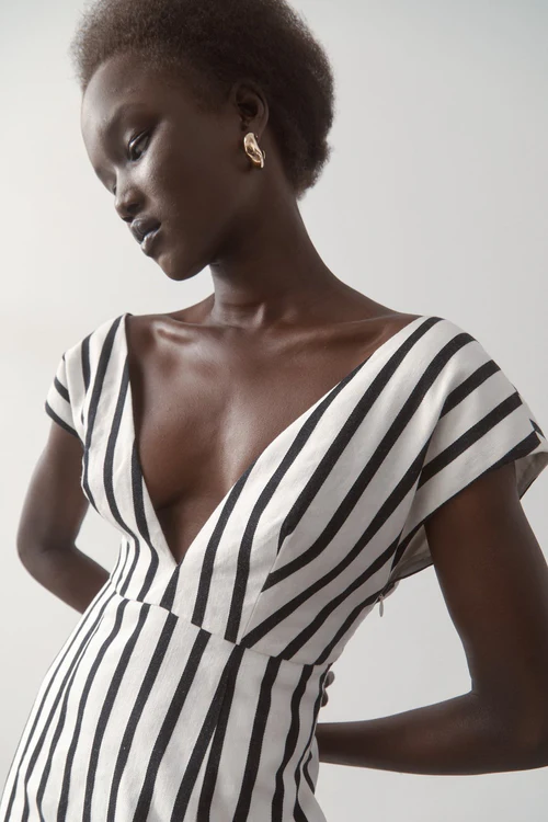 All product imagery and descriptions have been kindly provided by St. Agni. Inspired by the shapes of Japanese styling, the Origami Dress boasts a 100% linen fabrication, a sensual deep V neck, cap sleeves and a midi hemline. Its carefully considered tailoring takes on an architectural quality.